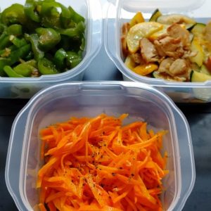 2色のズッキーニのサラダチキン和え(ポン酢マヨ炒め)