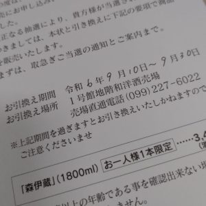 前回は出水外商の担当の方にお願いして配送してもらったのですが、