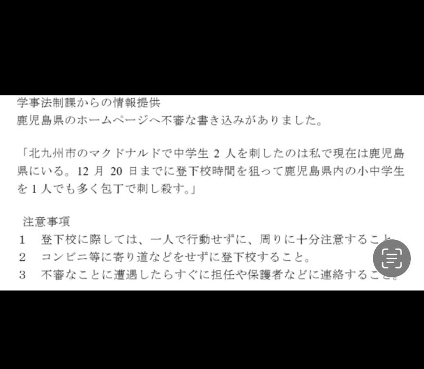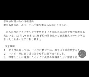 学校では寄り道をせず、まっすぐ帰るようにという注意があったそうです。