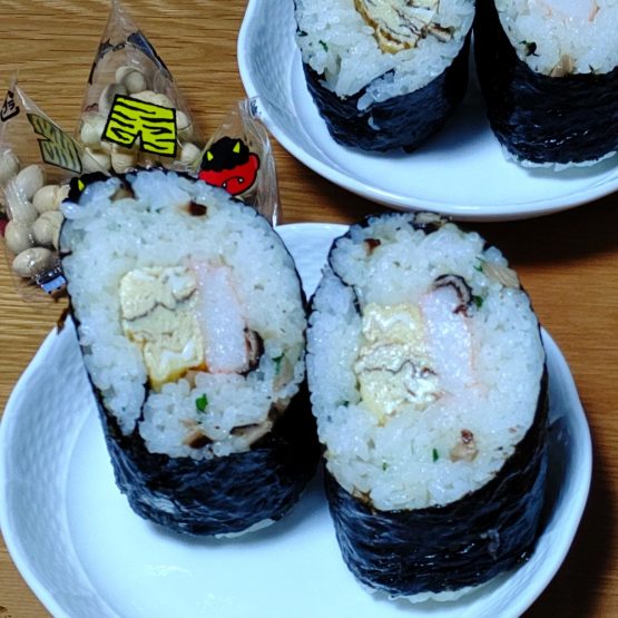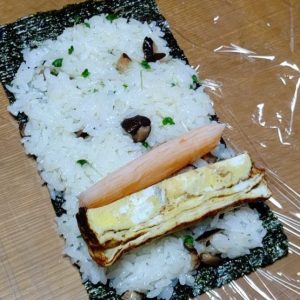 酢飯には甘辛く煮たしいたけとブロッコリースプラウトを混ぜました。