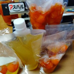 できあがった甘露煮は、スタンディングパウチに入れて、