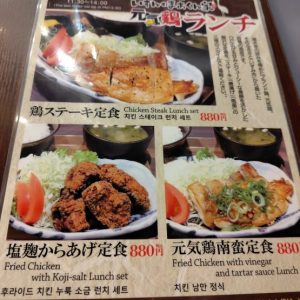 鶏ステーキ、チキン南蛮、唐揚げの3つがあります。