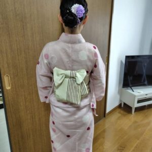 昨日はお茶席があるので、娘は浴衣で行きました。