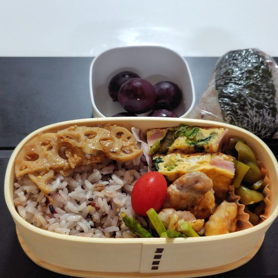 冷蔵庫にあるものでなんとかお弁当を作りました。