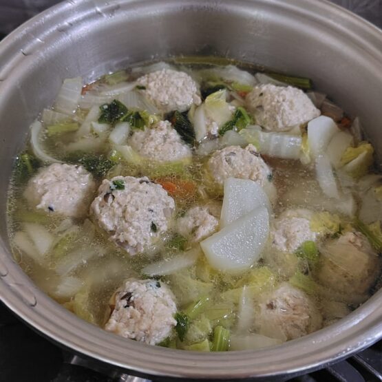 今回のスープは鶏団子も入れてボリューム満点。