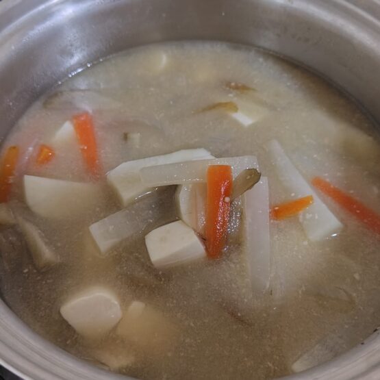 豚肉は入ってないので、豚汁風のおみそ汁です。