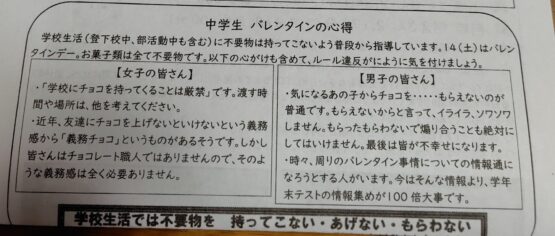 中学校はバレンタインデーのチョコ持ち込み禁止なので、