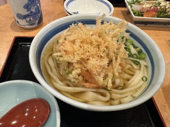 お出汁が全部にしみる前にかき揚げを取り分け。
