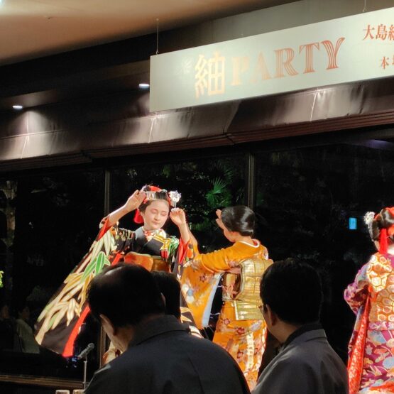 和裁士の方に柄の出方を相談して仕立てた白大島です。