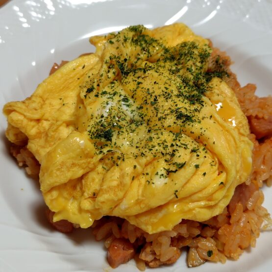 ケチャップライスには鶏ひき肉も入れてタンパク質を補給。