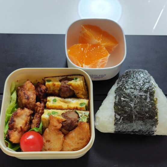 大きめのおにぎりと、おかずのお弁当にしました。