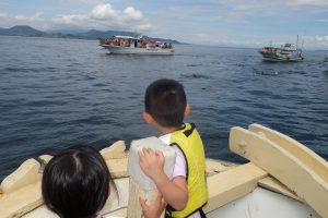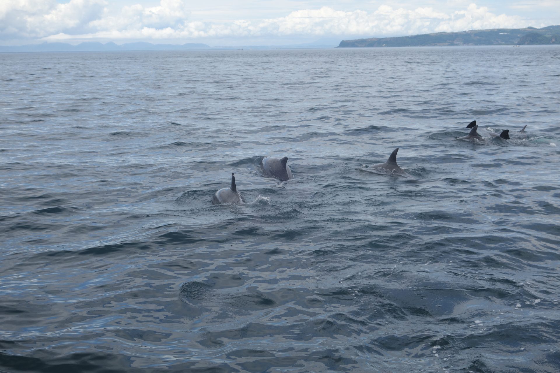 天草でイルカの群れに出逢う 2017年07月04日2025年09月18日 ワイズプラス代表 森好子 天草、お墓参りツアーでは イルカウォッチングにも行きました。 五和町あたりの港から船での出航です。 5分ほど沖合に行くと、 イルカの群れが!!! イルカ 小さい赤ちゃんイルカもいて、何十頭でしょうか? あんなにたくさんのイルカを見たのは初めて。 でも、なかなか写真に収めるのは難しい・・・ イルカウォッチング 日曜日でよいお天気だったのもあり、 他にもたくさんの船が来ていました。 近くて遠い天草。 また行きたいです。 森好子