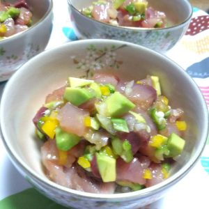 アボカド 1/2個 皮をむいて種を取って、ハガツオと同じくらいの大きさに
