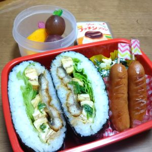 ちょっと元気の出るお弁当をと鰻を使ったおにぎらずを作りました。