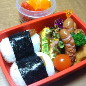 お米・海苔、卵。スティックセニョール、リーフレタス、鶏肉