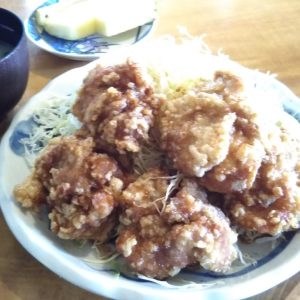 唐揚げは1個げんこつより一回り小さいくらいかな?