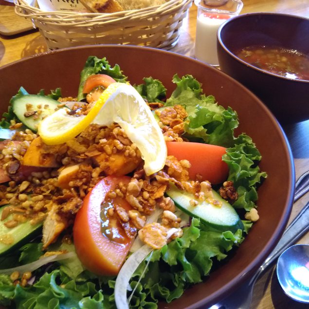 サラダの上には店内で販売中のグラノーラものっています。