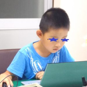 真剣にパソコンを操っています。(単にゲームしているだけかと・・・)