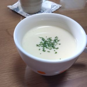 4.3に牛乳を入れ、塩で調味してできあがり。
