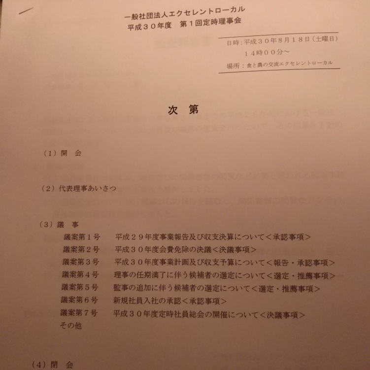 一般社団法人エクセレントローカルの理事会でした 2018年08月19日2025年09月30日 ワイズプラス代表 森好子 今回の出張のメインは 一般社団法人エクセレントローカルの理事会出席でした。 理事会資料 全国から食と農の現場で活躍している理事が集まってきています。 現在第3期目ということもあって、 議論することも様々。 新規事業についてなどいろんな話があったあと、 理事達の近況報告もあり、 参考になることがたくさん。 会議終了後は 会場でもあったエクセレントローカルにて会食。 ローカルの食材をおいしくいただきました。 森好子