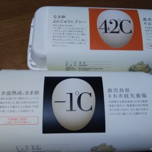 彼の販売している氷温なま卵(-1℃)となま卵(42℃)を