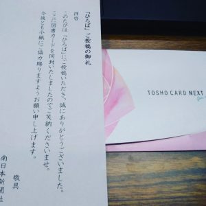 お礼をいただきました 2018年10月07日2025年09月18日 ワイズプラス代表 森好子 南日本新聞社から封書が。 どうやら、先日投稿して、掲載いただいた「ひろば」の お礼が届いたようです。 お礼の図書カード そっか、掲載されると、お礼もらえるんですね。 どちらかというと、私の方が掲載していただいてありがとうございました! って感じなんですけどね。 せっかくなので、この図書カード、 大切に使わせていただきます。 学校に寄付しようかな? それには少ないか・・・ 森好子