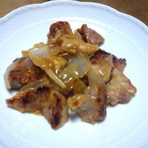 厚切りの豚肉を一口サイズにして、酢豚風に。